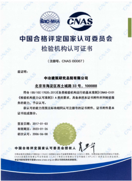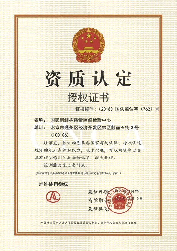 国家钢结构质量检验检测中心,由国家工业和信息化部推荐,依托中冶建筑研究总院有限公司,于年通过国家认证认可监督管理委员会资质认定评审,并于年月授权成立。是经政府授权的从事钢结构工程及产品、材料检测的第三方检测机构。 中心目前下设个检测部;拥有正式员工近人,其中硕士及以上学历人,高级工程师及以上技术职称人,一级注册结构工程师人,一级注册建造师人;既有实验室用房多平米;主要检测仪器室设备余台套,其中部分仪器设备处于国际同类实验室领先水平;检测能力范围基本覆盖钢结构工程全部检测能力参数。 中心自成立以来,集科技创新开发,实验室试验和现场工程检测、监测于一体,围绕以下基本任务开展...[查看详细++]