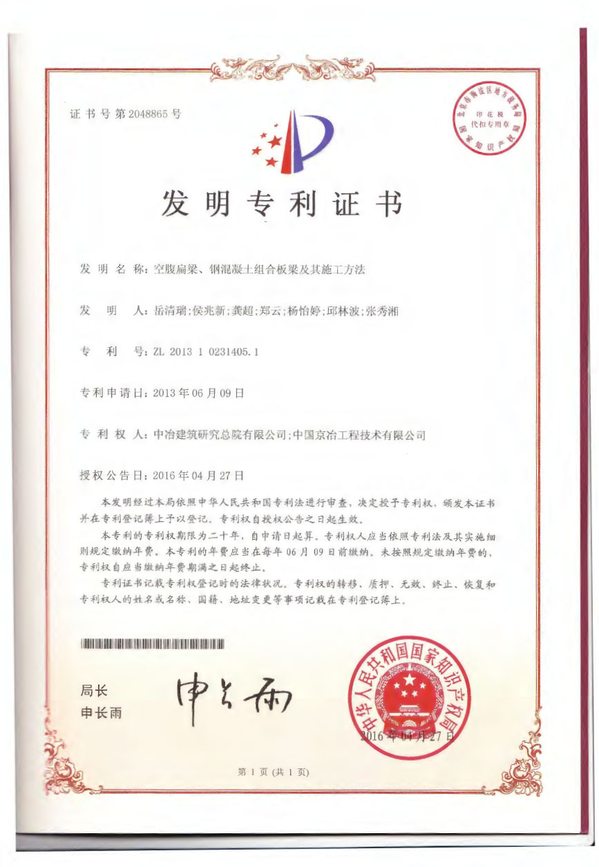 专 利 名 称:空腹扁梁、钢混凝土组合板梁及其施工方法 发 明 人:岳清瑞、郑云等 专 利 号:201310231405.1 发 明 摘 要:本发明公开一种空腹扁梁、钢混凝土组合板梁及其施工方法,主要为了提供一种空腹扁梁及应用该空腹板梁构成的钢混凝土组合板梁。本发明空腹扁梁,包括若干腹板、分别与所述腹板连接的上翼缘板和下翼缘板,所述腹板沿着所述上、下翼缘板的长度方向间距排列。本发明,应用广泛,经济性能好,且施工方便。