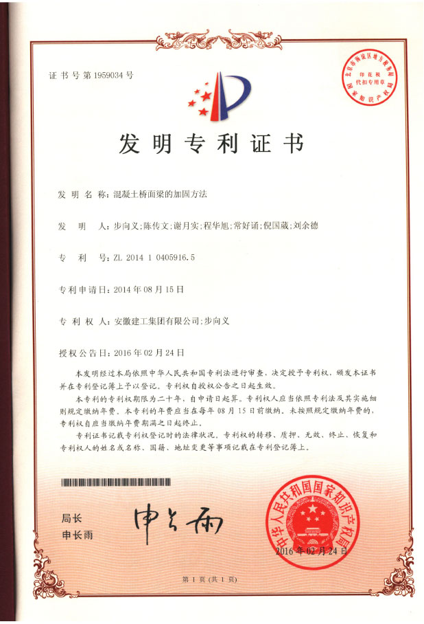 发 明 摘 要:本发明涉及一种混凝土桥面梁的加固方法,包括步骤:沿着桥面的纵向方向,在桥面梁两侧的桥面板上间隔设置通孔,在桥面梁的底部间隔设置向上延伸的螺杆孔;清洗桥面梁及附近的杂物;处理桥面梁上的裂缝和受损部位;在桥面梁的整个表面以及位于桥面梁两侧1米范围内的桥面板的下底面上均匀涂抹防水粘结胶;安装开口钢箱梁,并通过设置在开口钢箱梁的第一竖向侧壁和第二竖向侧壁上的浇筑孔向开口钢箱梁中浇筑自密实混凝土;常温养护45天。采用本发明的混凝土桥面梁的加固方法,不仅能够保证新老材料之间的良好结合,而且还能极大地避免桥面梁表面裂缝或破损部位的产生。