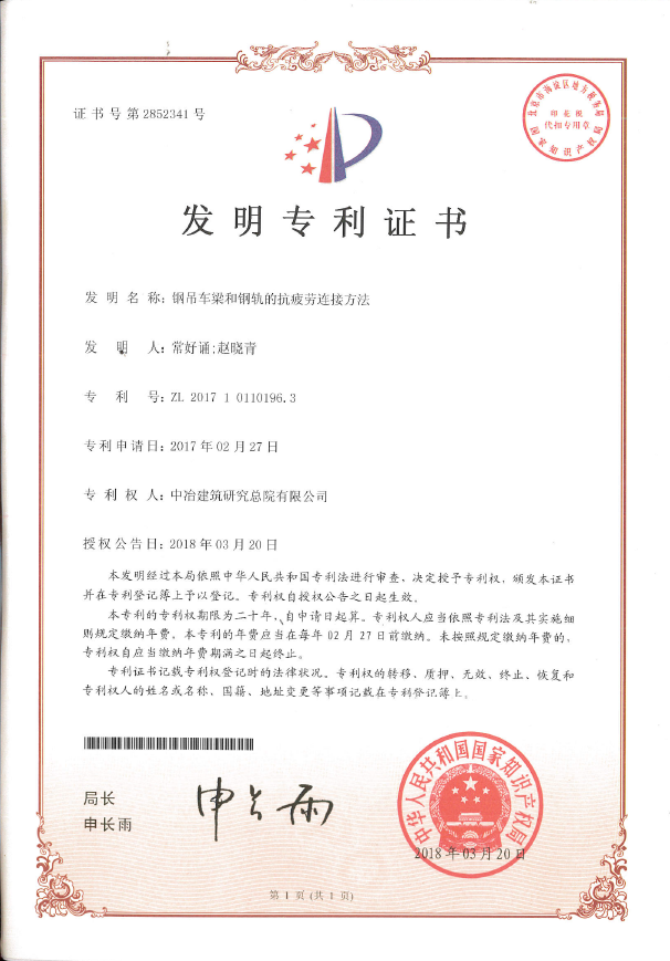 专 利 名 称:钢吊车梁和钢轨的抗疲劳连接方法