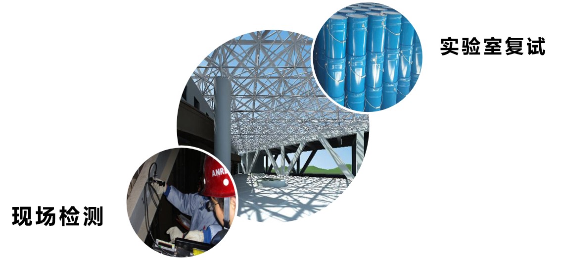检测对象:大跨度金属钢结构、网架涂装;网架杆件,螺栓球节点,焊接球节点;建筑幕墙涂装等
